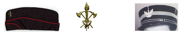 Capacetes de Bombeiro - modelo antigos (latão e couro, este com cordões de desfile; escudo típico-a Fénix ; o modelo em latão era usado pelos CBVs e o modelo em couro pelo BSB, em qualquer dos casos sempre com as insígnias próprias de cada um destes CBs