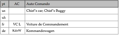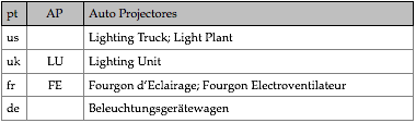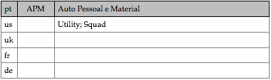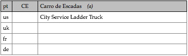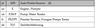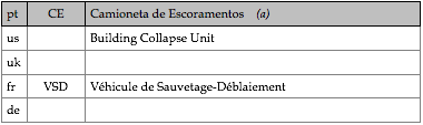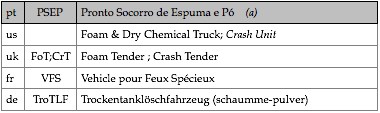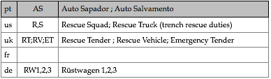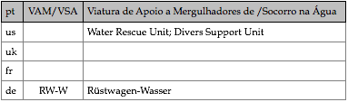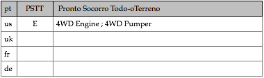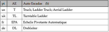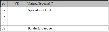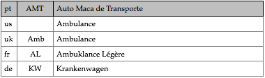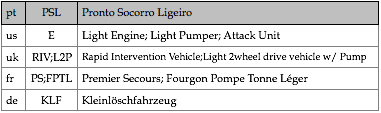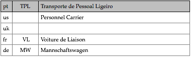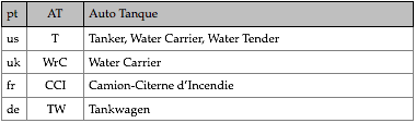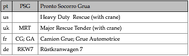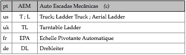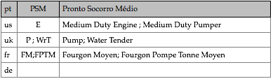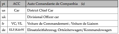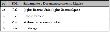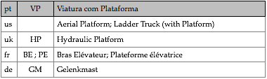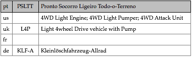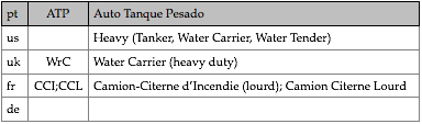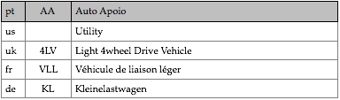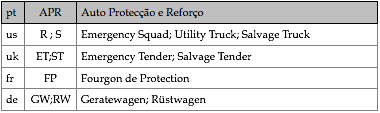 Tipologias das viaturas representadas, nas respectivas épocas