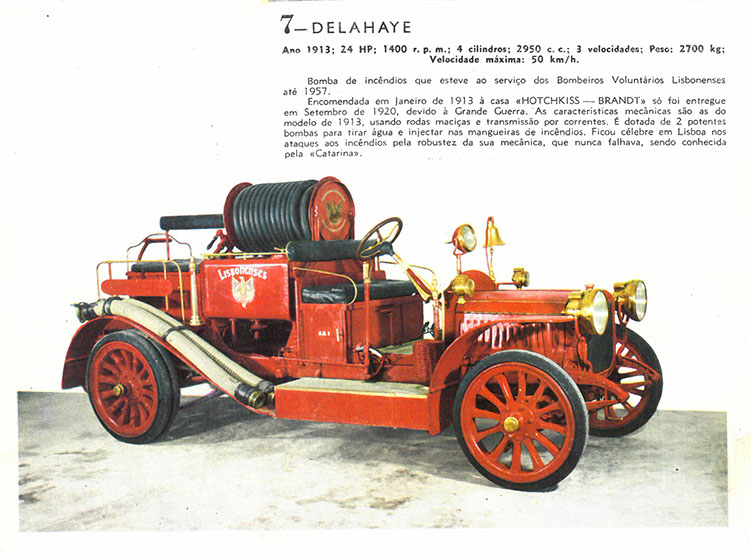 AB#1; this chain-driven apparatus was once a very innovative appliance, thanks to the (at the time unexisting) combination of the following set of resources: a water tank + a PTO-driven pump + a booster hose, on fixed reel. Affectionately nicknamed Catarina it saw 1st line active duty until 1957, before fully retiring in 1961... It is currently preserved at the Museu Automável do Caramulo, in central Portugal (see D01b); before retirement