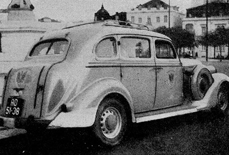 Viatura oficial adaptada em AM, após oferta e reconstrução/reconversão, na sequência de acidente rodoviário em 1943 no qual que faleceu o então Ministro das Obras Públicas, Duarte Pacheco; visível, também, em D14