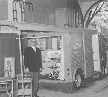 PSM-Posto de Socorros móvel (co-financiado pela Fundação Calouste Gulbenkian). Similar aos que 4 outros CB Voluntários da capital (BV Campo de Ourique-E07, BV Cruz de Malta-F12, BV Ajuda-sem imagem e BV Lisboa-facto ainda a confirmar) também operaram na mesma época ou mais tarde. De notar, na parede do quartel, as típicas escadas de ganchos portuguesas, em madeira (4 metros de extensão quando armadas)