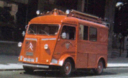 APR; equipment carried consisted in several resources for: scene illumination, individual protection and forcible access tools. Note the beacon still in amber color (soon the pattern would become blue) as well as the set of ground ladders and assorted pike poles. It was later replaced by the Citroën APR featured in D22