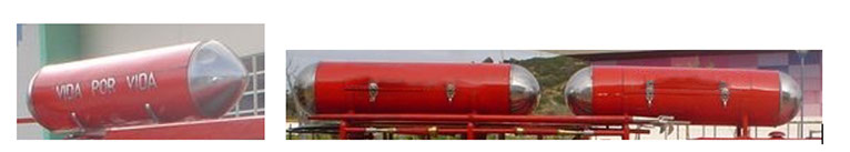 Cofres cilíndricos para transporte de rolos de mangueira flexível e outro equipamento, incluindo manga de salvamento em lona (25m; dita saco de Genebra)