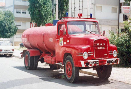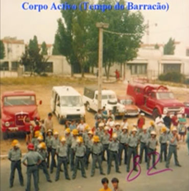 An old apparatus line of this FD (1982 pic ?). Featured: MAN chassis for the future Tanker/Water carrier shown in H03/H04 + FIAT AM + Land Rover Utility jeep (AA ?; probably donated by the Portuguese Navy‟s Sea Rescue Agency) + Morris mini AC + Chevrolet APS (FF-07-82; donated by the ex-BSB, where it was operated new in 1972; see also H03). The latter is identical to the one donated by the BSB to the VFD of Ajuda-C92.