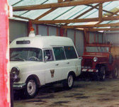 Apparatus from what may have been the FD‟s “start-up” lot: AM#3 (Mercedes Benz; still using an amber beacon, before the blue standard was mandatory) and one AC/AA Willys jeep (probably donated by the Portuguese Army). At that time the fire station was called “o barracão” (literally: “the shed”, duly illustrated by the picture…)