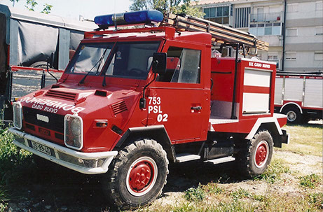 PSP1; Sem detalhes disponíveis; oriundo dos BV de Agualva-Cacém. Notar o quebra-mato frontal para protecção em ambiente de fogos florestais. Embora com emblema Mercedes tratar-se-á de facto de um Hanomag-Henschel…
